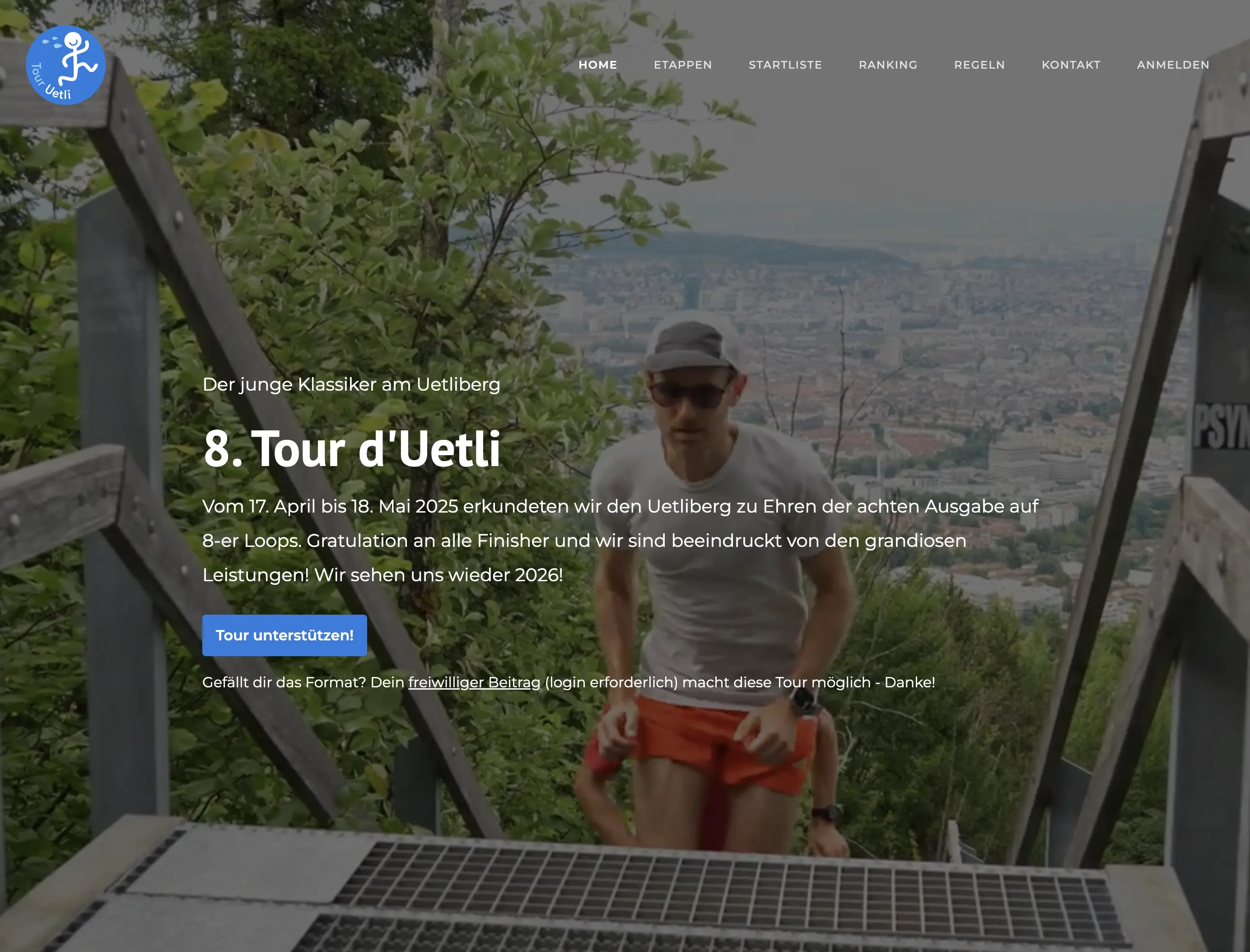 Die Tour d’Uetli ist ein mehrstufiges Trailrunning-Format rund um den Zürcher Hausberg Uetliberg. Über mehrere Wochen hinweg werden neue Etappen freigeschaltet, die Teilnehmende flexibel absolvieren können – wann und wie oft sie möchten. Die beste Zeit zählt für das Ranking.